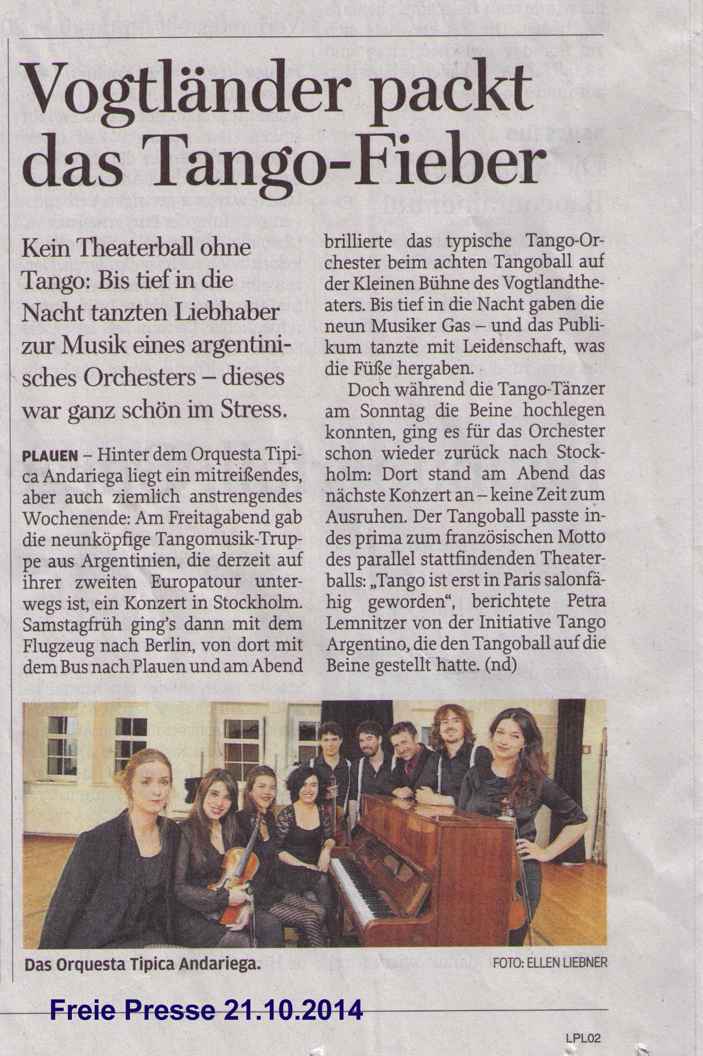Freie Presse vom 21. Oktober 2014